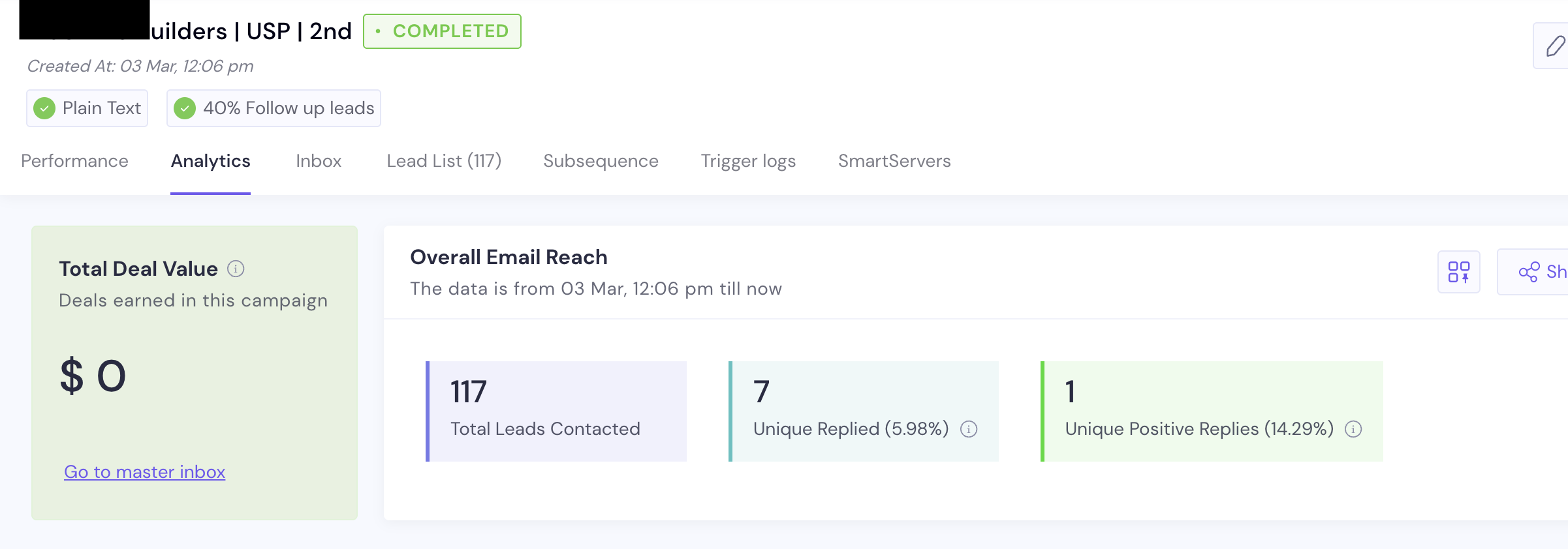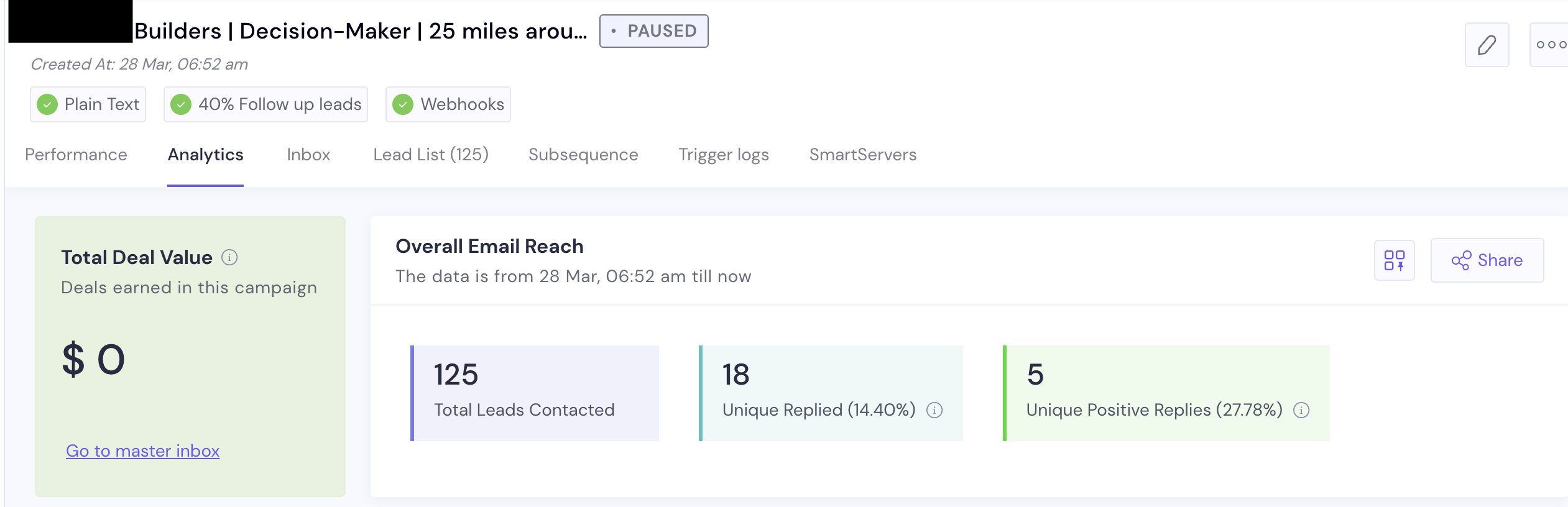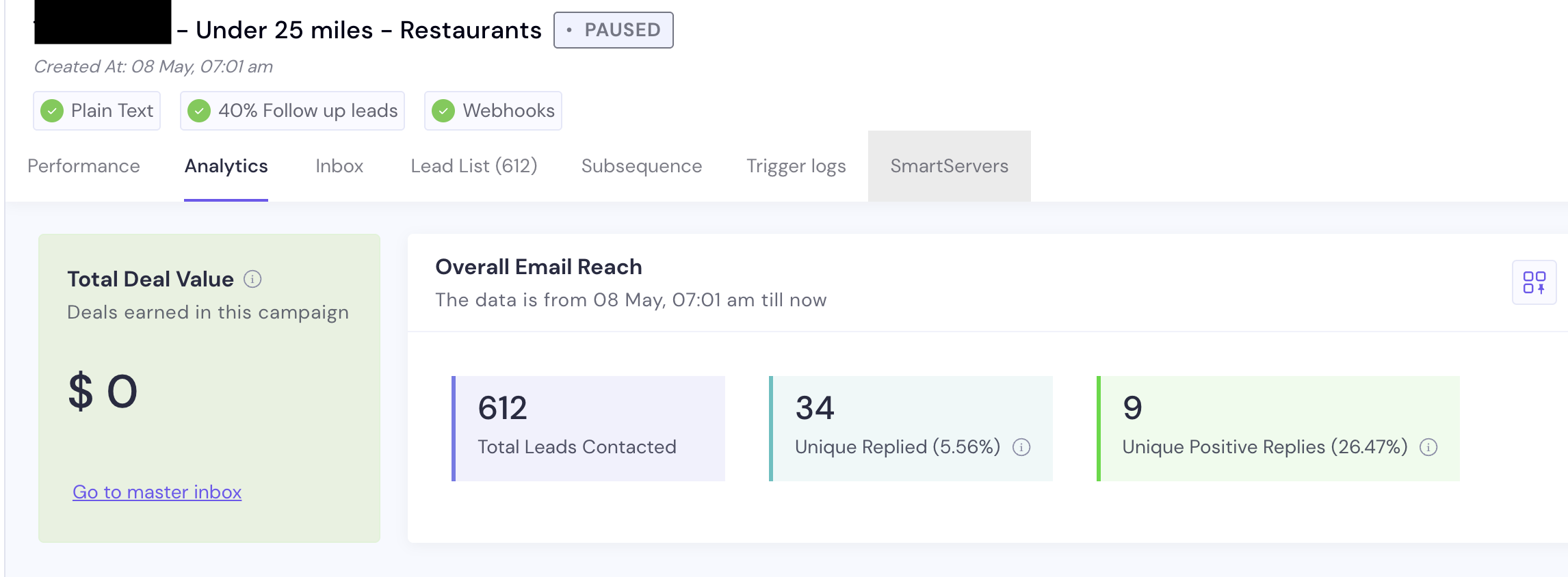• Best Performing Campaign – “Signature Dish”: 247 emails sent → 33 replies → 15 qualified leads